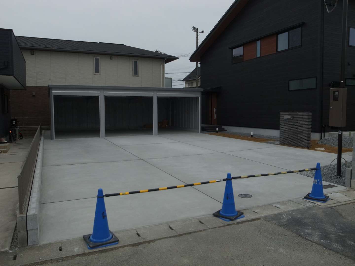 いよいよ引き渡しが近づいてきました。ガレージは車が3台収容でき、そのガレージの前には土間コンクリートが広々と・・贅沢な感じです。裏にもウッドデッキが設置されておりプライベートな庭があります。お客様が引き渡し後も植栽を植えていく計画だそうです。引き渡し後を楽しみですね。