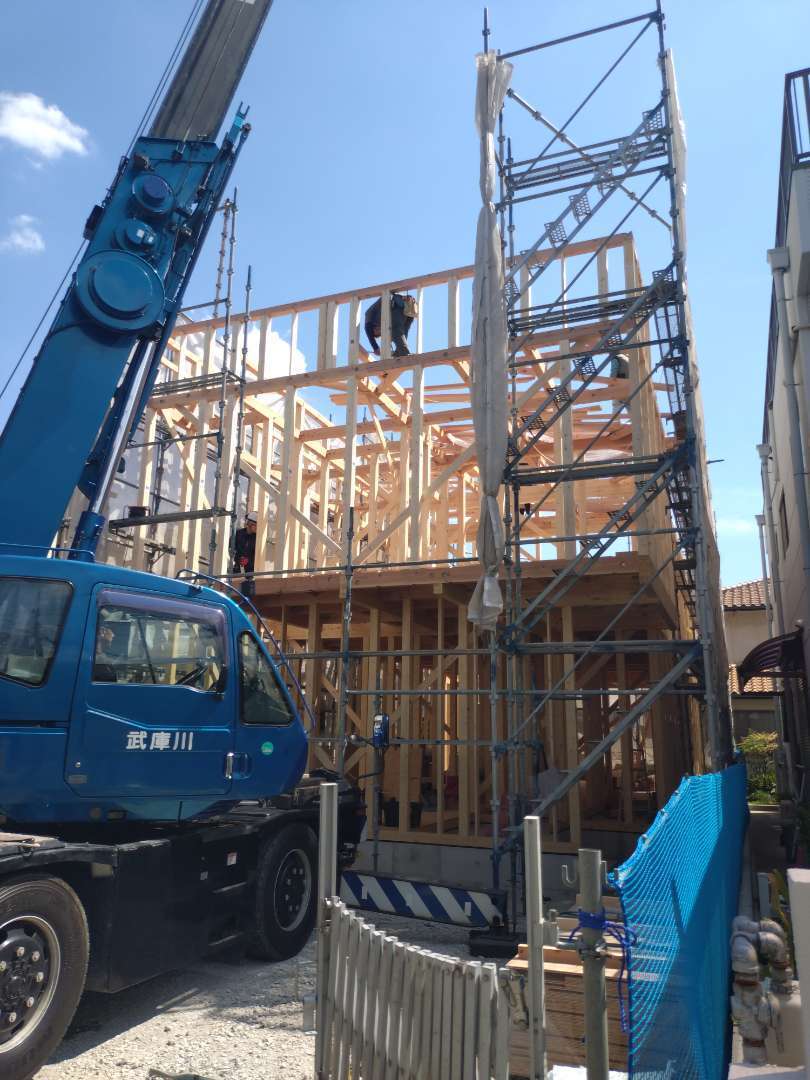西宮市甲子園町にて木造戸建て住宅の新築棟上げです。